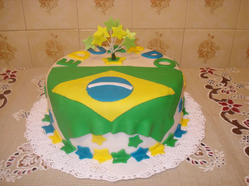 Bolo massa baunilha e chocolate, recheios de brigadeiro e Brigadeiro Branco, dois andares, cobertura em pasta americana, com mini bolos latinhas de cervejas (Skol, Brhama e Antarctica), gelinhos perolados e bonequinhos personalizados dos Aniversáriantes.